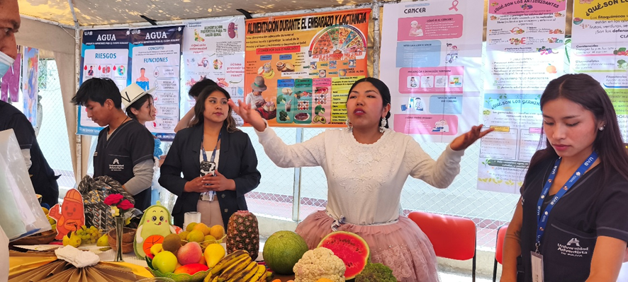 Este jueves16 de octubre, estudiantes de segundo y sexto semestre de la carrera de Nutrición y Dietética de la Universidad Adventista de Bolivia (UAB), participaron de la feria de salud organizada en conjunto con la Unidad de Nutrición del Hospital Viedma, en conmemoración del Día Internacional de la Alimentación.