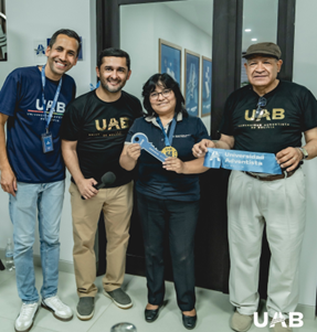 El evento contó con la presencia de las principales autoridades de la institución: el Mg. Alfredo Santa Cruz, rector de la UAB; el PhD. Víctor Choroco, vicerrector académico; el Mg. Dheuller Fagundes, vicerrector financiero; y la Lic. Nancy Sarzuri, directora de la carrera de Comunicación Social y Medios Digitales. También participaron docentes y estudiantes, quienes guiaron el recorrido por las nuevas instalaciones.