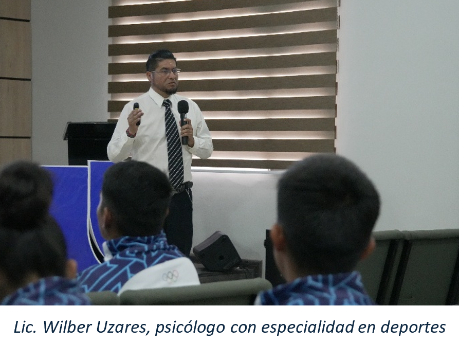 “Una invitación a los apasionados del deporte y la actividad física: están a tiempo de prepararse. Nuestra institución cuenta con laboratorios, implementos deportivos y docentes capacitados para servir al país y a nuestro departamento”, expresó el Licenciado Ramos. Entre los invitados estuvo el Lic. Wilber Uzares, psicólogo y docente universitario externo, quien presentó la ponencia “Psicología de la Actividad Física”, donde abordó Estrategias de Intervención, Entrenamiento Mental y Manejo de Emociones.