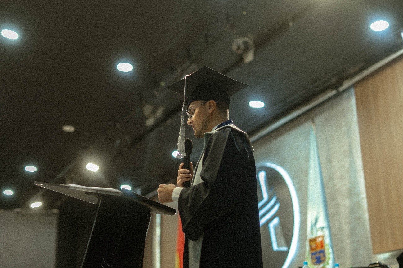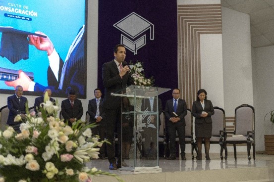 Pr. Belker Alfaro, uno de los graduados con honores, impartió un mensaje inspirador para los graduandos
