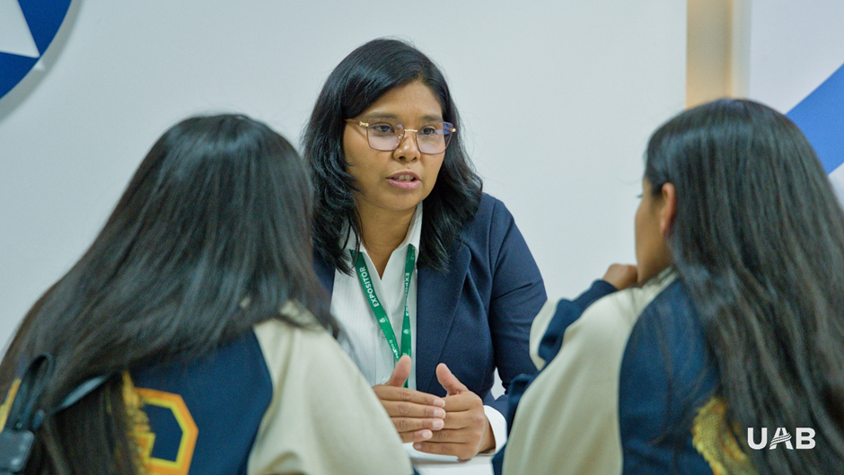 «Estamos recibiendo a los visitantes con información detallada sobre nuestras carreras y los beneficios de estudiar en la UAB. La respuesta del público en este primer día ha sido constante; las personas se acercan interesadas especialmente en los laboratorios y las facilidades tecnológicas que ofrecemos», comentó la encargada de atención.